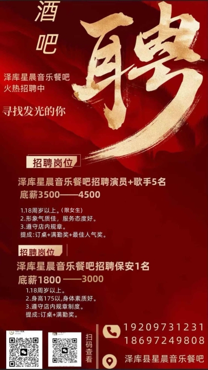 泽库星晨音乐餐吧火热招聘中寻找发光的你招聘岗位泽库星晨音乐餐吧招聘演员...